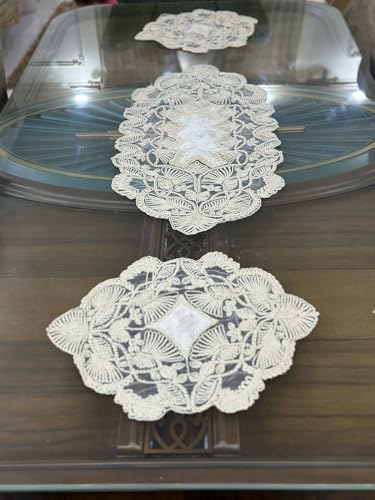 Generic - طقم مفرش تسريحة 3 قطعة (شكل 8)