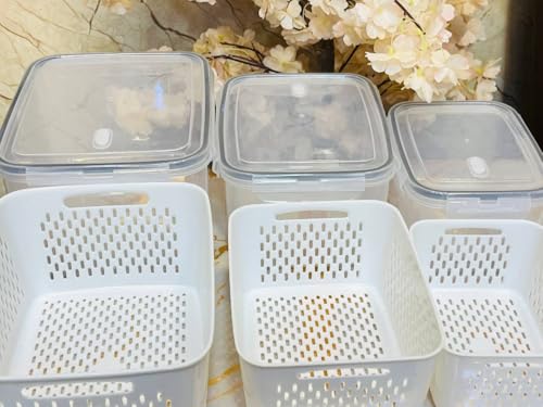 Generic - طقم حاويات تخزين طعام، مصنوع من البلاستيك، مجموعة من 3 قطع، بحجم طقم متكامل مع مصفاة داخلية