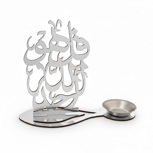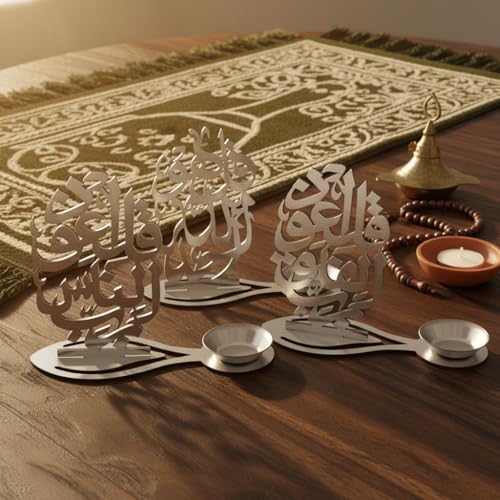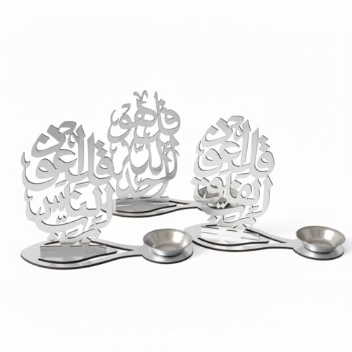 Generic - طقم مباخر 3 قطع (ذهبي وفضي) - تصميم ليزر عصري بآيات قرآنية - مبخرة ديكور فخمة لركن القهوة والضيافة - تحفة فنية إسلامية مودرن للمنزل. (فضي)