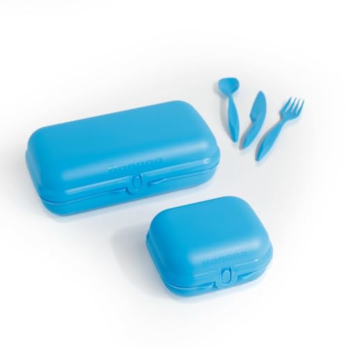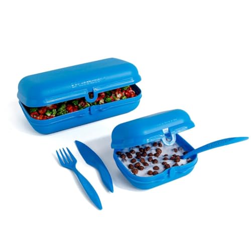 Generic - مجموعة لانش بوكس 3 قطع متكاملة علب طعام بسعات 1200 مل و 600 مل مع أدوات مائدة تصميم آمن وعصري للأطفال والكبار مثالية للمدرسة، العمل، والنادي ( ازرق فاتح ) H