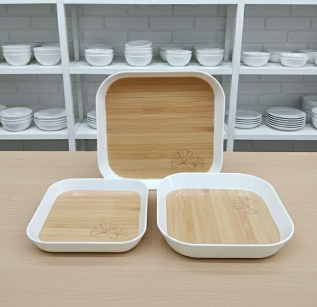 Generic - طقم اطباق ميلامين من 3 قطع بتصميم خيزران، حامل ترفيه باحجام مختلفة للمناسبات والاستخدام المنزلي
