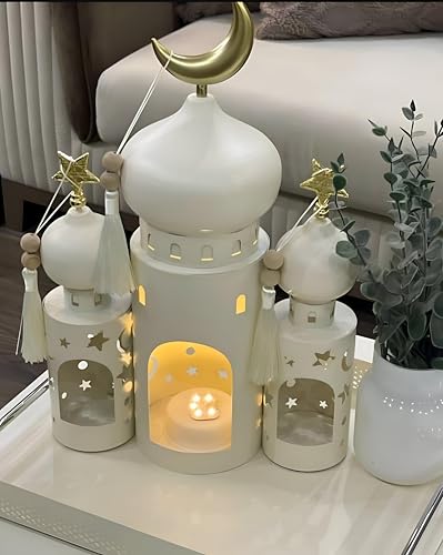 - يخلق التصميم الفريد لهذه الفوانيس توهجًا ناعمًا ودافئًا مثاليًا للصلاة المسائية والتجمعات العائلية والتأملات الليلية خلال شهر رمضان.