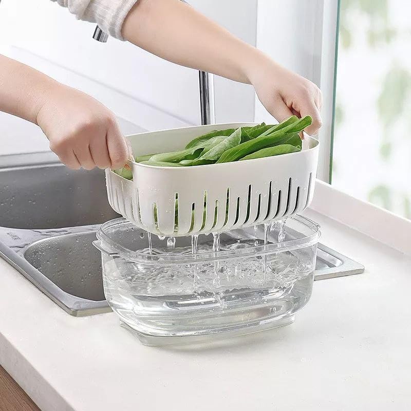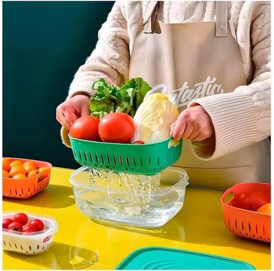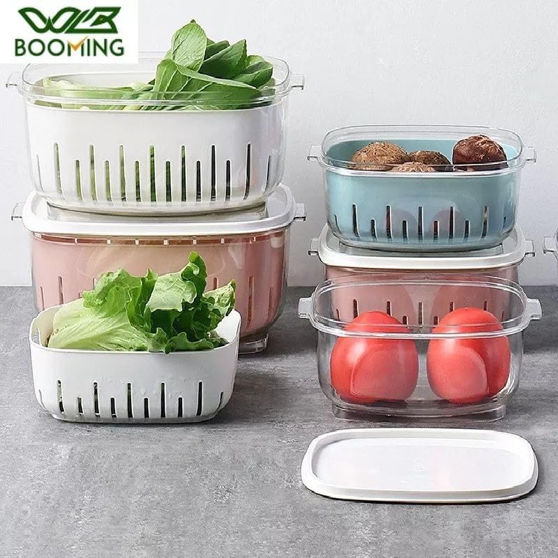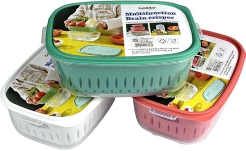 - تصميم متعدد الاستخدامات: طقم حاويات تخزين من ثلاث قطع بوظيفة مصفاة مدمجة لغسل وتصفية وتخزين الفواكه والخضروات كلها في حاوية واحدة