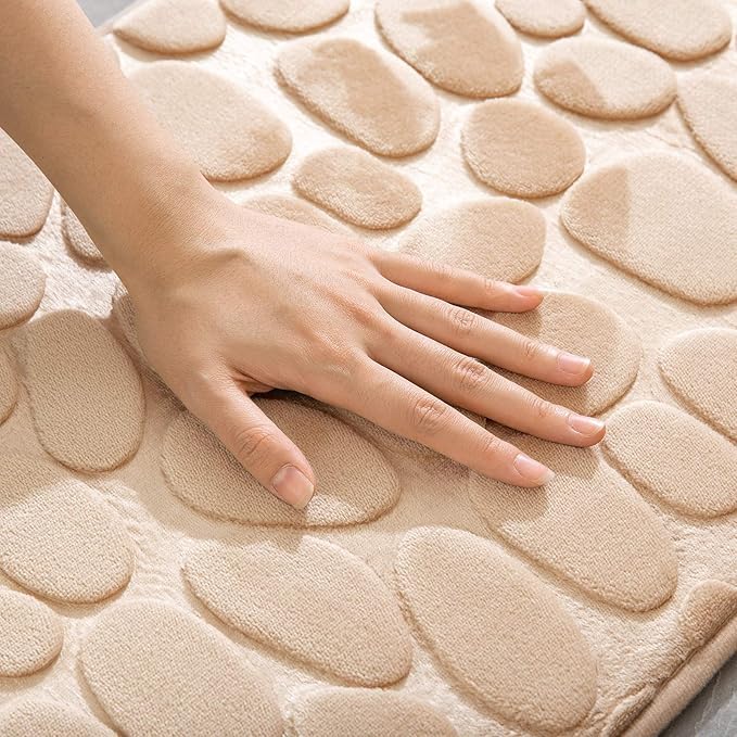 Generic - مجموعة سجاد حمام غير قابلة للانزلاق مكونة من 3 قطع: سجاد ناعم وذو قدرة على الامتصاص لغرف النوم وغرف المعيشة والحمامات، متوفرة بمجموعة واسعة من الألوان لتناسب أي ديكور (بيج)