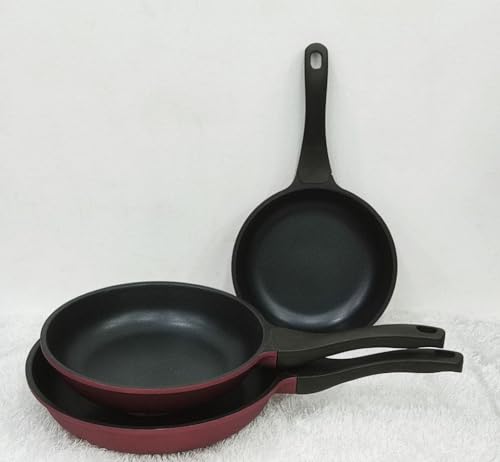 Generic - طقم مقلاية غير لاصقة 3 قطع – مقاسات 20 / 24 / 28 سم – خامة عالية – موديل كوري – مقاومة للخدش وسهلة التنظيف نبيتي