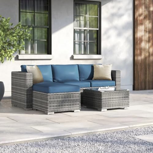 - تصميم عصري: مجموعة أريكة مقسمة من الخيزران المنسوج باللون الرمادي مع وسائد زرقاء نابضة بالحياة ووسائد بلون بيج تخلق مساحة معيشة خارجية أنيقة