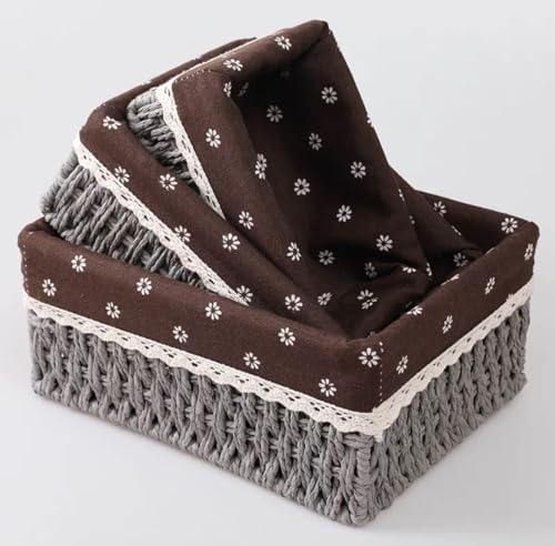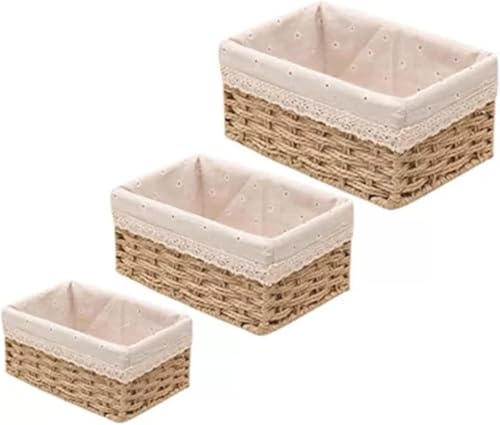 Generic - مجموعة سلال تنظيم من الراتان مكونة من 3 قطع - سلال منسوجة انيقة مع جزء داخلي من القماش | مثالية للغسيل أو ديكور المنزل أو تخزين الحمام أو تقديم الهدايا (مجموعة واحدة (3 قطع))
