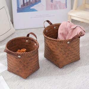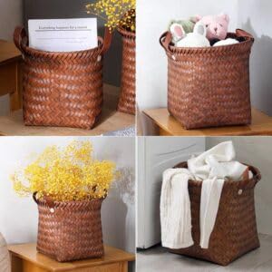 Generic - مجموعة سلال تخزين منسوجة من الروطان بمقاسات مختلفة من 3 قطع مقاس صغير: 30 × 30 × 23 سم؛ متوسط: 35 × 35 × 25 سم؛ كبير الحجم: 40 × 38 × 28 سم