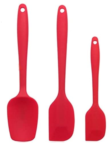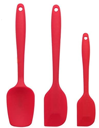 Generic - طقم ملاعق سباتولا سيليكون مقاومة للحرارة من 3 قطع، ملاعق مطاطية غير لاصقة (احمر) co15656
