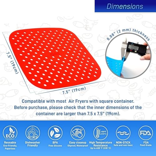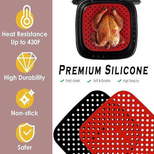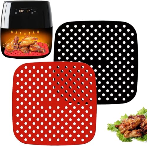 Generic - طقم بطانات سيليكون للمقلاة الهوائية، بطانات مثقبة مقاومة للالتصاق وقابلة لإعادة الاستخدام، مربعة ومقاومة للحرارة وآمنة للاستخدام في غسالة الأطباق للقلي والخبز والطهي بالبخار، 3 قطع، 21 × 21 سم