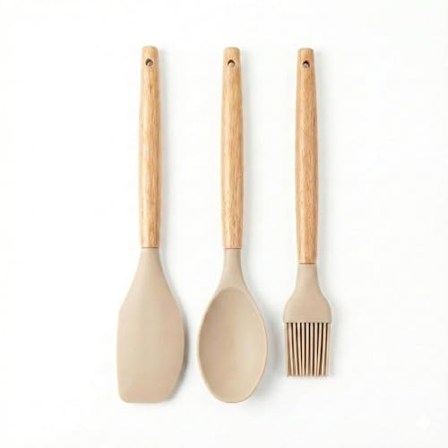 Generic - طقم توزيع سيليكون 3 قطع ( سباتولا عميقة ومسطحة + فرشاة دهن) – سيليكون غذائي آمن، مقاوم للحرارة، لا يخدش الأواني (بيج)
