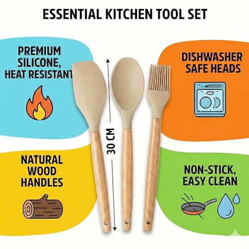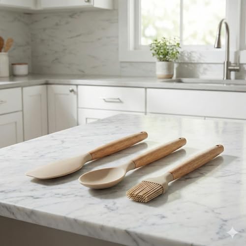 - طقم متكامل 3 قطع: يشمل سباتولا عميقة ومسطحة وفرشاة دهن لتغطية أغلب استخدامات المطبخ من التقليب للتقديم والدهن