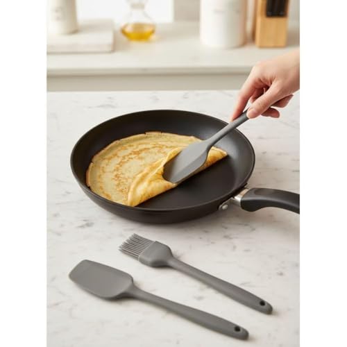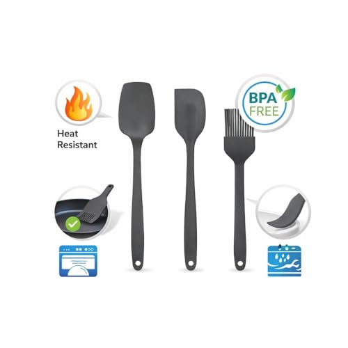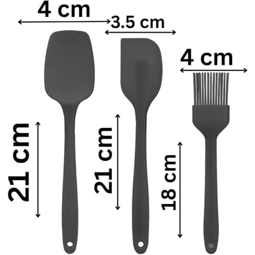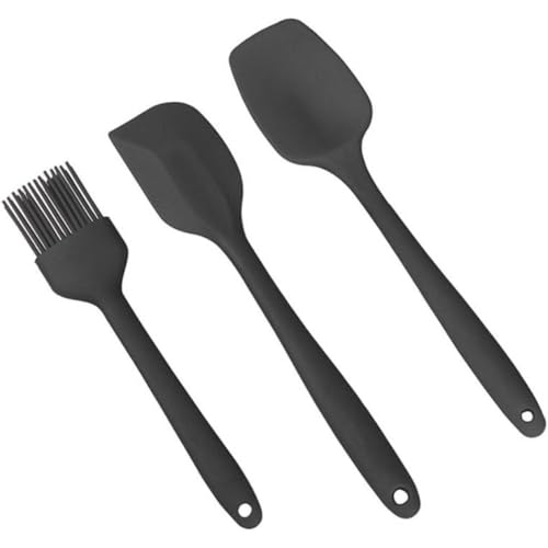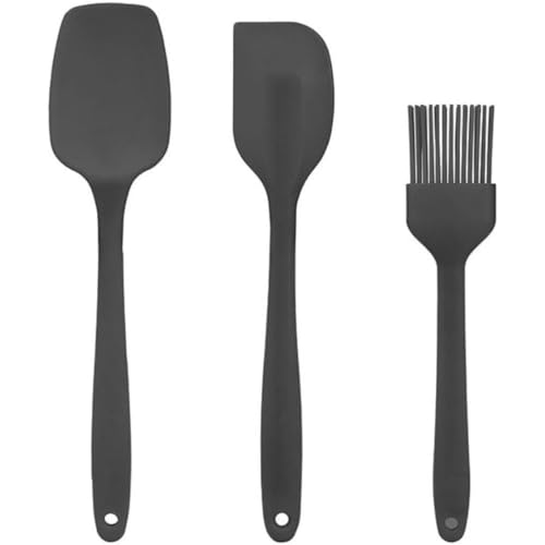 Generic - مجموعة ادوات مطبخ من السيليكون مكونة من 3 قطع من ملعقة مسطحة وفرشاة دهن - ادوات سيليكون مقاومة للحرارة وخالية من BPA للخبز والطبخ والشواء - اواني طهي امنة غير لاصقة وحواف مرنة وسهلة التنظيف في غسالة