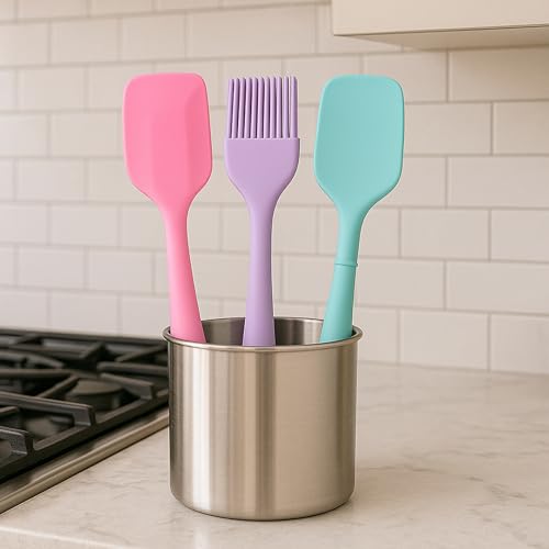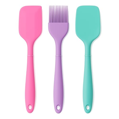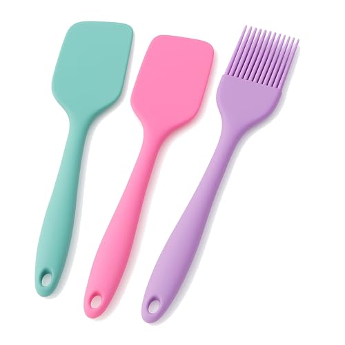 Generic - طقم توزيع سيليكون 3 قطع — سباتولا مسطحة + سباتولا تقليب + فرشاة دهن للخبز والطهي | سيليكون آمن للطعام وغير لاصق وسهل التنظيف