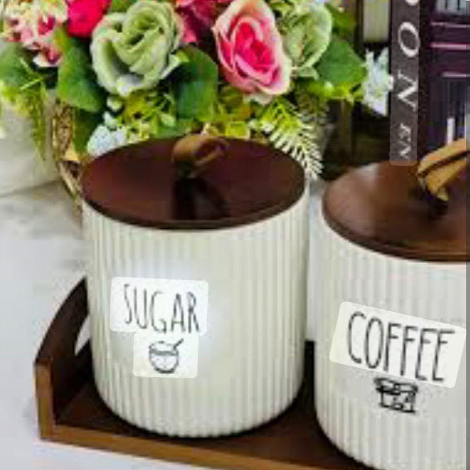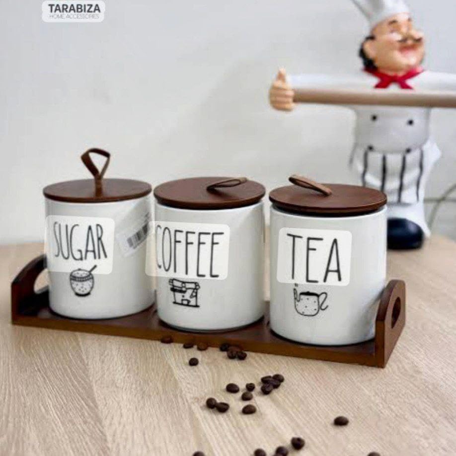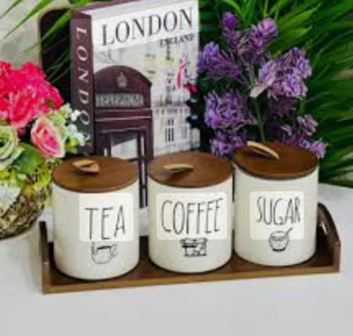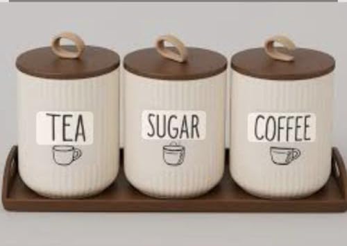 - مجموعة متكاملة: طقم من 3 برطمانات بورسلين فاخرة لتخزين الشاي والقهوة والسكر، مع صينية خشبية أنيقة