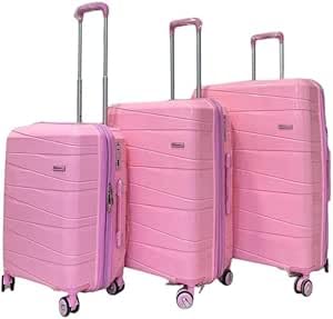 Generic - مجموعة شنط سفر بعجلات من السيليكون غير قابلة للكسر من 3 قطع مع قفل تي اس ايه وسحاب مزدوج قابل للتوسيع و4 عجلات دوارة صامتة، روز روز مقاس L 20/24/28