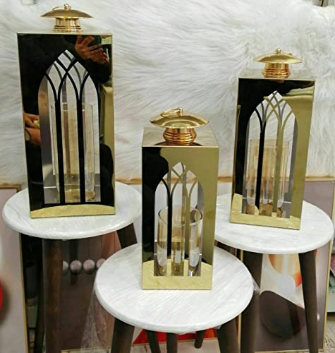 Generic - طقم فانوس 3 قطع مقاسات مختلفه كبير معدن شيك جــداً تقدري تحطيه على البوفيه او طقم ترابيزة 3قطع هيضفلك لمسة جمال لديكور وهيكون مميز جدآ 😍🌙✨
