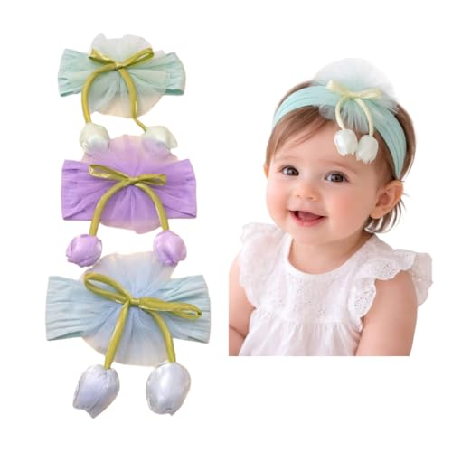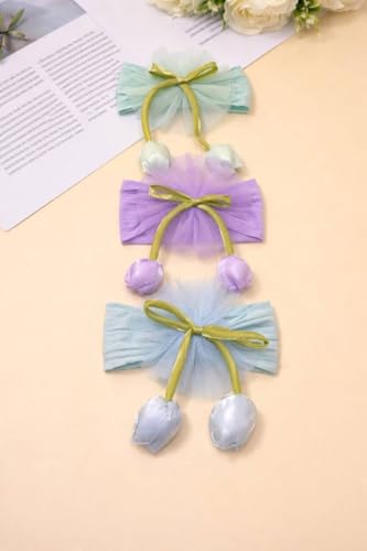 Generic - عصابات رأس للأطفال بتصميم زهور وفيونكة، 3 قطع، بزينة توليب (باستيل، أزرق وبنفسجي)
