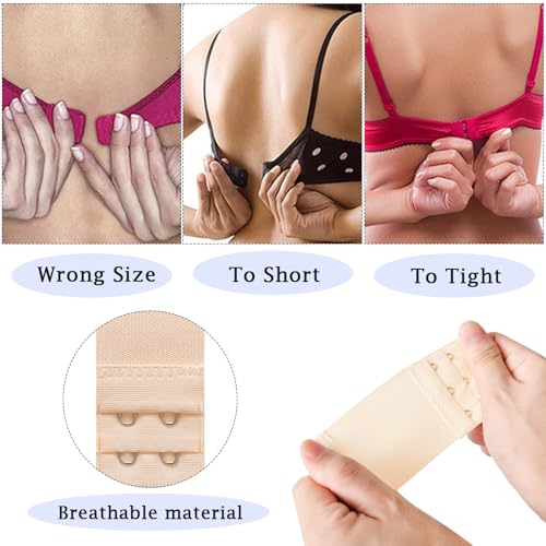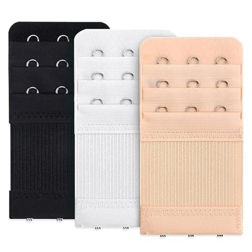 Luoqun88 - 3 قطع من وصلات حمالة الصدر، حزام تمديد حمالة الصدر، حزام تمديد حمالة صدر مريح قابل للتمدد للنساء، خطاف من الستانلس ستيل، 3 الوان (اسود، ابيض، بشرة)