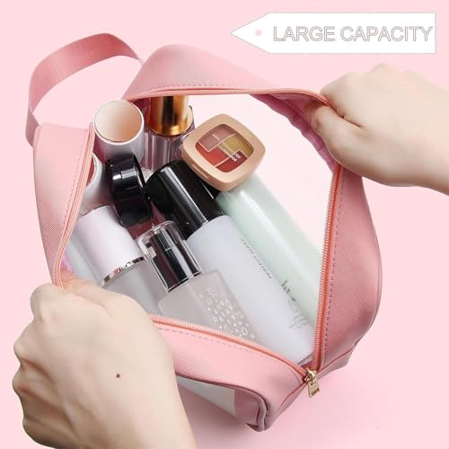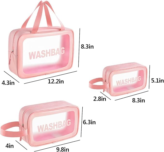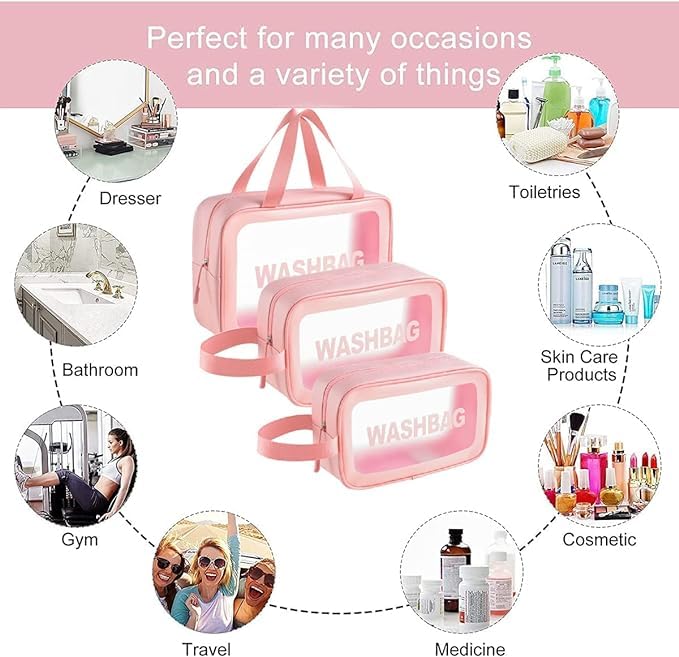 Generic - شنطة مكياج شفافة لمستحضرات التجميل من 3 قطع للسفر للنساء والبنات (بينك)