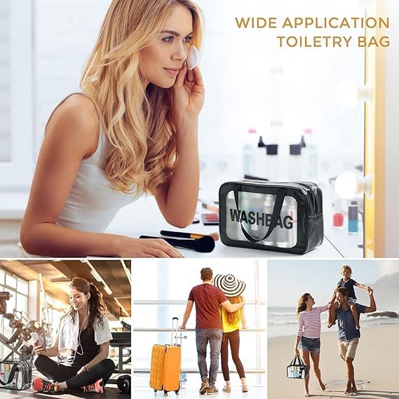 Generic - حقائب شفافة لمستحضرات التجميل 3 قطع، حقائب تنظيم مستحضرات التجميل، مقاومة للماء، سحاب معدني، للسفر والتخييم (اسود)