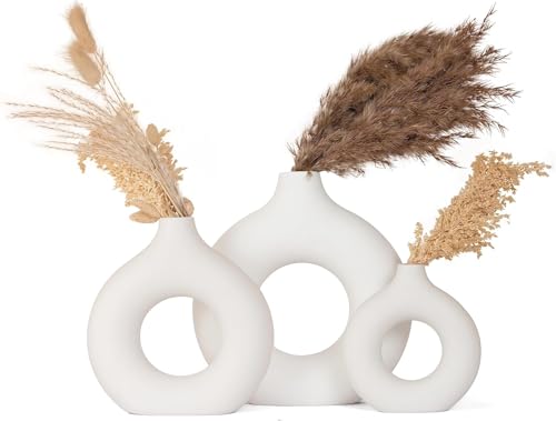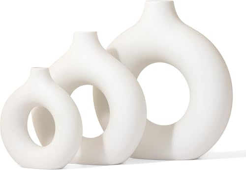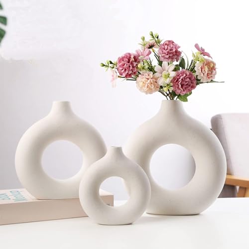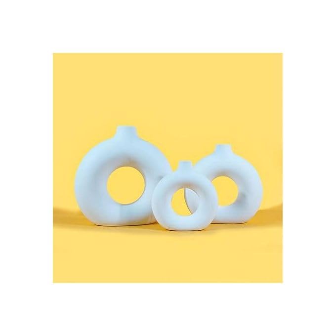 Generic - طقم فازات على شكل دونتس، 3 قطع، لون أبيض، تصميم عصري أنيق، مناسبة لغرفة المعيشة والصالون والمكتب