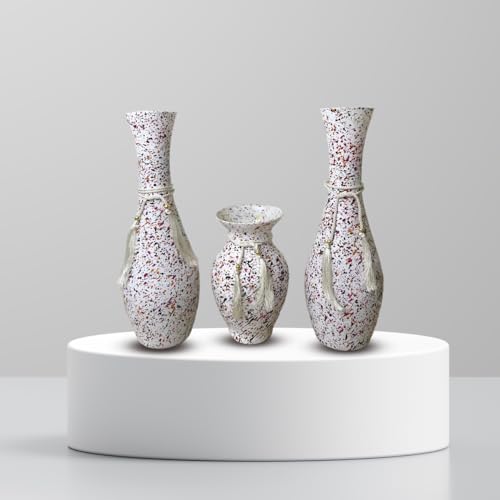Generic - ✅فازة مكونة من 3 قطع مصنوعة من الزجاج بشكل مودرن مناسب لجميع انماط الديكور لعشب البامباس والزهور المجففة، اكسسوار ديكور مناسب لغرفة المعيشة وغرفة النوم والمنزل بشكل مودرن (اوف وايت)