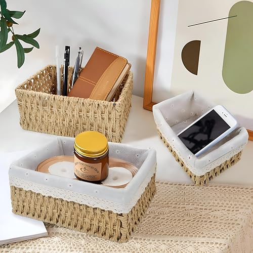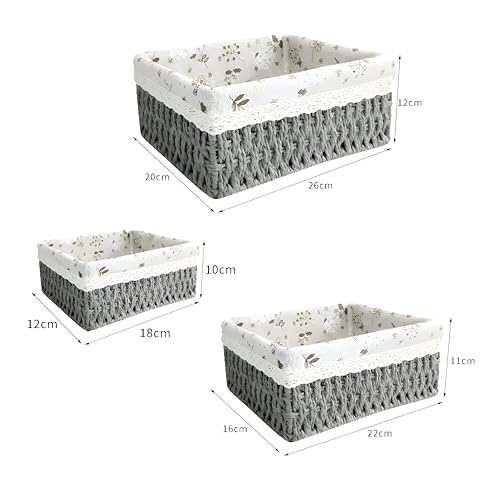 Generic - سلال تخزين منزلية 3 قطع بتصميم عملي وأنيق لتنظيم السناك والمفاتيح والريموت والمكياج، خفيفة وسهلة النقل وتساعد على ترتيب المساحات بسرعة مع شكل مميز (رمادى)