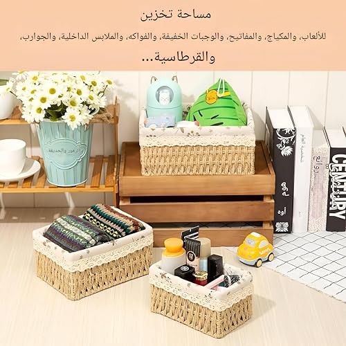 - طقم متكامل بثلاثة مقاسات مختلفة يضم ثلاث سلال بأحجام متنوعة لتلبية احتياجات التخزين المختلفة، مما يساعد على تنظيم الأغراض الصغيرة والمتوسطة بسهولة وفي مكان واحد.