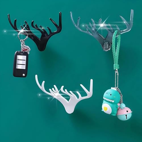 Generic - خطاف حائط برأسين على شكل قرون لتعليق المعاطف، حامل معاطف لاصق شفاف للحيوانات، حامل مناشف ورقية أكريليك قوي، مثالي لتزيين المنزل وتنظيم المساحة بشكل فعال - 3 قطع