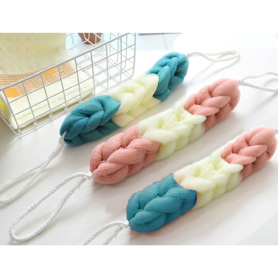 Generic - ليفة ظهر اسفنجية طويلة التمدد للاستحمام مع حبل، اسفنجة تقشير الجسم للرجال والنساء، متعددة الألوان، 3 قطع