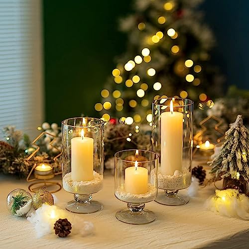Generic - 3 قطع من حاملات الشموع متعدده الالوان ذات الأعمدة الزجاجية ، حامل شموع إعصار للشموع العمودية ، مزهرية كبيرة من الإعصار لعيد الميلاد والهالوين وقطع مركزية لغرفة الطعام. (شفاف)