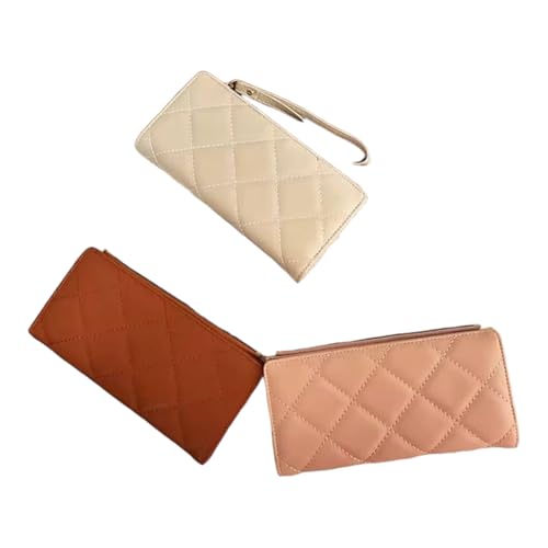 Generic - 3 حقيبة يد نسائية مبطنة، جلد صناعي، متوفرة بألوان كريمي وبني وزهري، حقيبة كلاتش عصرية مع نمط مربعات