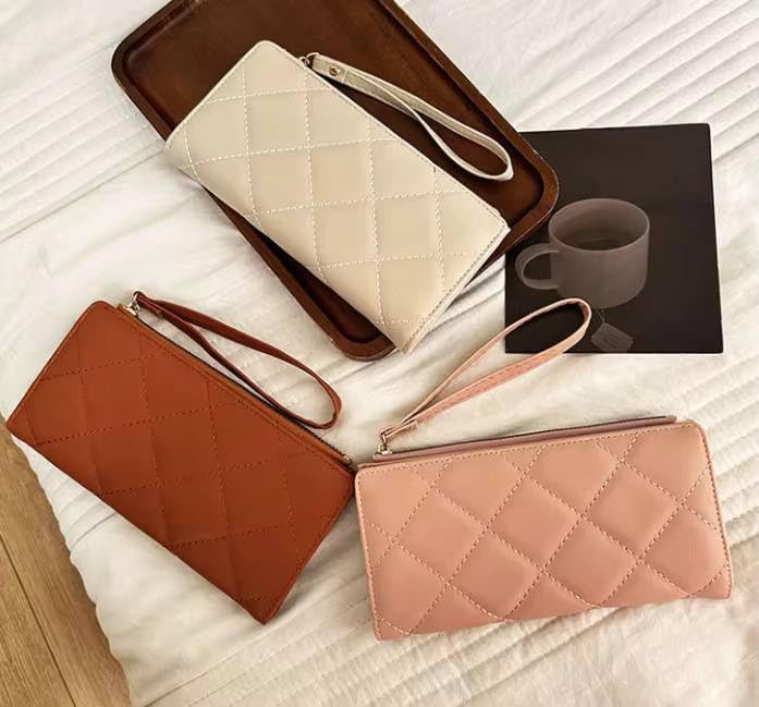 - تصميم مبطن: حافظة نقود أنيقة بنمط مربعات مبطن مع خياطة متقنة للمتانة والمظهر الراقي