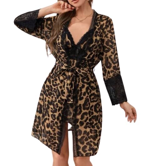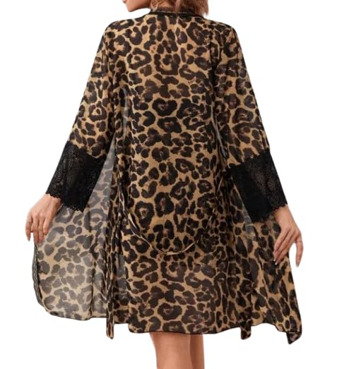 Generic - فستان قصير بطبعة جلد الفهد للنساء من 3 قطع، رقبة على شكل حرف V، اكمام فانوس للمنزل، لون بني واسود، الخامة: زبدة مستوردة - فستان قصير بطبعة جلد الفهد للنساء، 3 قطع، رقبة على شكل حرف V، اكمام واسعة
