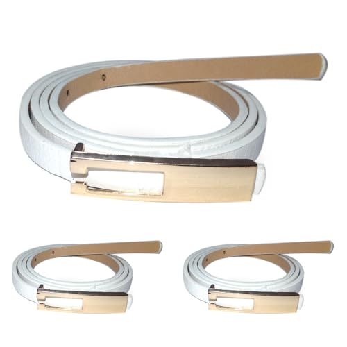 Generic - حزام جلد رفيع للنساء، ابزيم معدن لون ذهبي، جلد أبيض، 01202611002، 3 قطعة