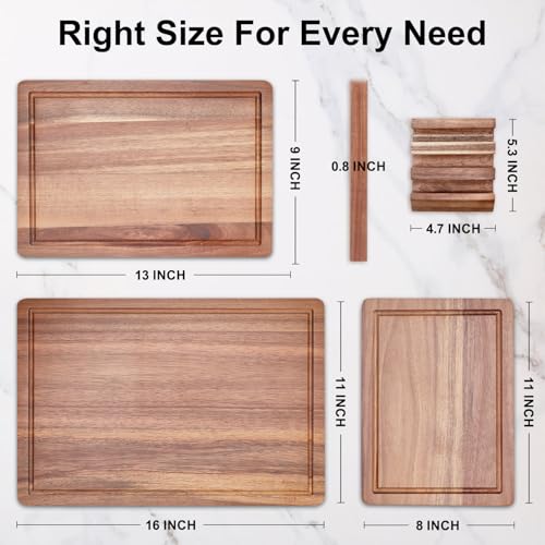 Ayiaren - مجموعة الواح تقطيع خشبية من 3 قطع، الواح تقطيع كبيرة من خشب الاكاسيا لتقطيع الخضار والجزار والخبز والجبن