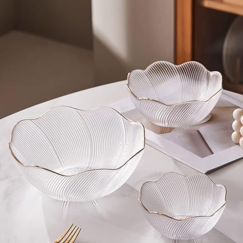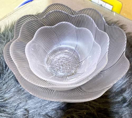 AREXOL - طقم بولات زجاج شفافة 3 أحجام بتصميم وردة أنيق لتقديم السلطات والحلويات والمكسرات – طقم تقديم فخم ومتين من الزجاج عالي الجودة سهل التنظيف ومناسب للعزومات والمناسبات اليومية