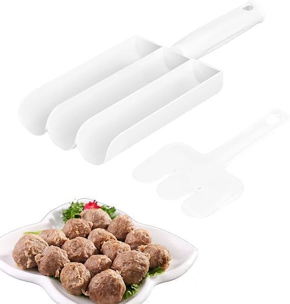 Generic - قالب صنع الكفتة بـ 3 فتحات مع سكين، غير لاصق لتشكيل كرات اللحم والكباب للحوم المفرومة والفطائر، مكبس بلاستيكي متين آمن غذائيًا لنتائج طهي سهلة وموحدة