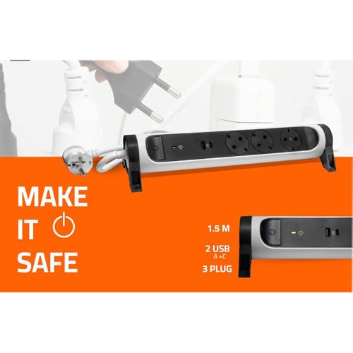 • قابس بزاوية للتعامل المرن ومؤشر ليد لمراقبة حالة التشغيل متوافق مع أجهزة USB نوع A وUSB نوع C أقصى طاقة 3680 وات ومعدل تيار 16 امبير.