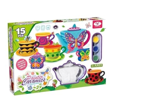 Generic - طقم شاي سيراميك ستيم للتلوين بتصميم فراشات للأطفال من عمر 3 سنوات فما فوق للإبداع والتعلم