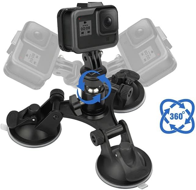 Generic - حامل كاميرا للسيارة يثبت بثلاثة قواعد شفط لكاميرا جوبرو متوافق مع جميع كاميرات التصوير و الفيديو و الاكشن