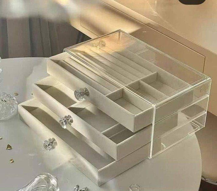 - خامة أكريليك شفافة وعملية: مصنوع من الأكريليك الشفاف الذي يسمح برؤية الإكسسوارات بسهولة دون الحاجة للبحث عنها