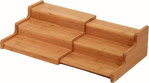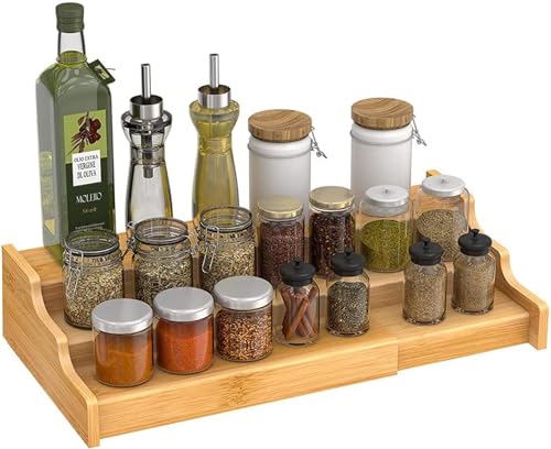 Spaceshoop - رف تخزين توابل من الخيزران مكون من 3 طبقات، منظم للمطبخ من 3 طبقات (خشبي، كبير)