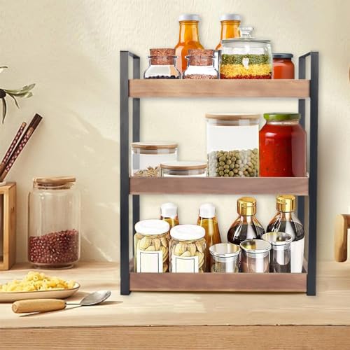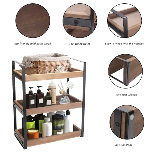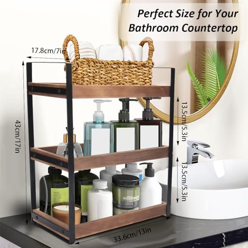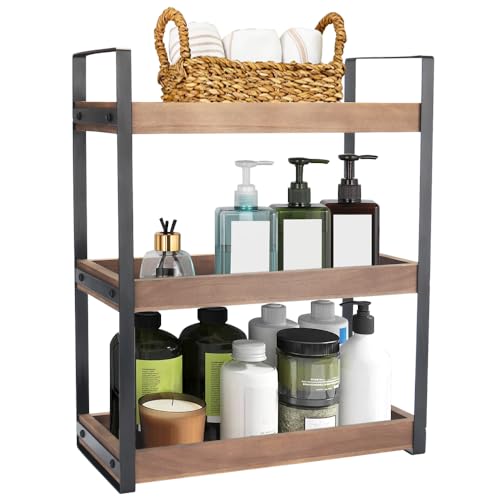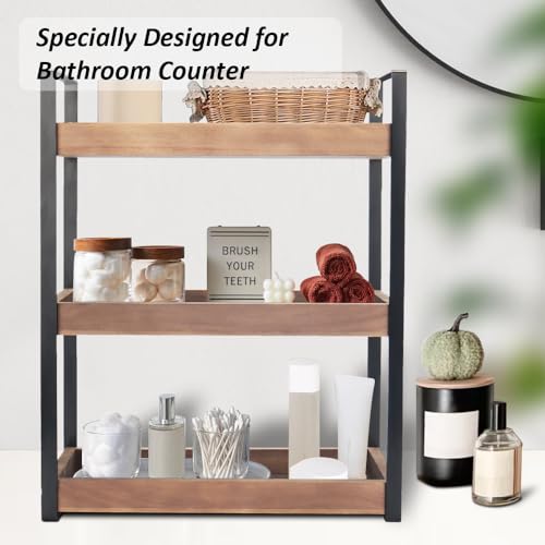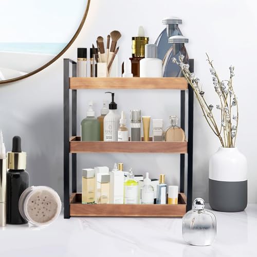 Infankey - منظم طاولة الحمام من 3 طبقات - منظم طاولة الحمام الخشبي لطاولة الحمام، منظم مستحضرات العناية بالبشرة، حامل مستحضرات التجميل، رف تخزين قائم للتوابل، بني