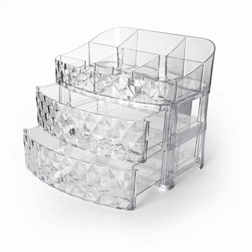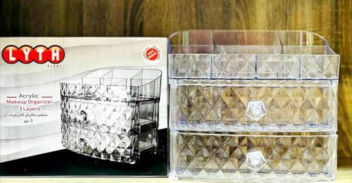 Generic - منظم مكياج أكريليك شفاف 3 أدوار مع درجين لتخزين أدوات التجميل – تصميم عملي للطاولة والحمام وغرف النوم h
