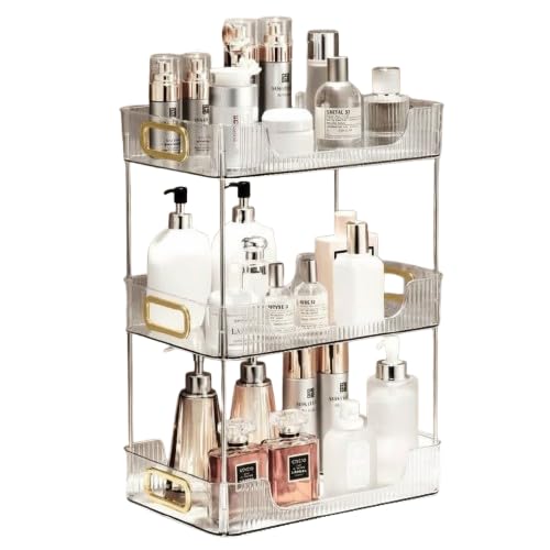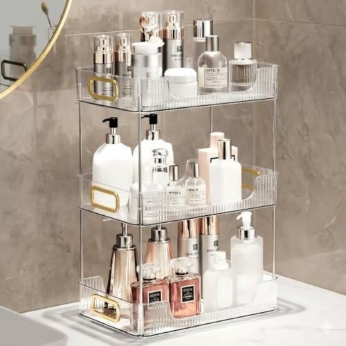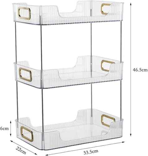 Generic - برج تنظيم وتنسيق المقتنيات الشفاف المكون من 3 مستويات بمقابض ذهبية فاخرة وتصميم هندسي موفر للمساحة ka