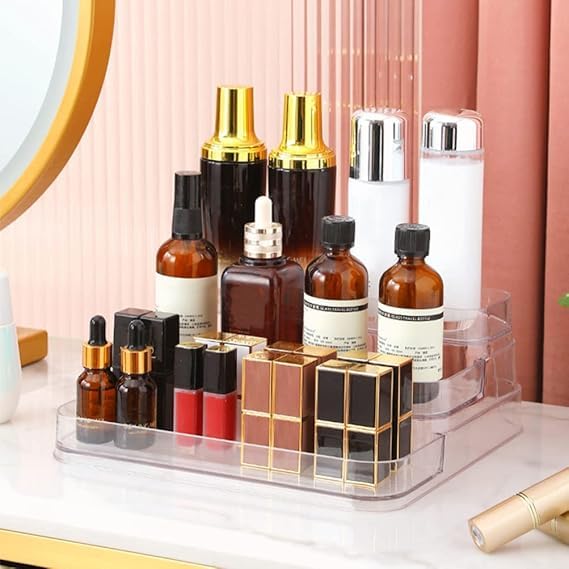 Generic - رف عرض شفاف مكون من 3 طبقات، حامل عطور، حاوية صغيرة لتنظيم زجاجات مستحضرات التجميل وأدوات المكياج وأحمر الشفاه وزجاجات طلاء الأظافر