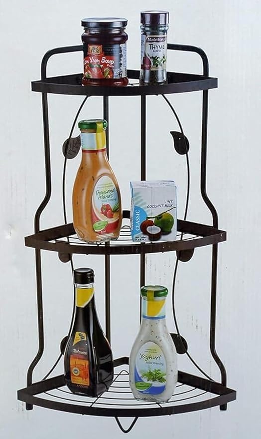 - تصميم متعدد الاستخدامات: رف تخزين زاوية ثلاثي الطبقات مثالي لزيادة المساحة في المطابخ أو الحمامات أو غرف المرافق مع هيكل معدني أسود أنيق