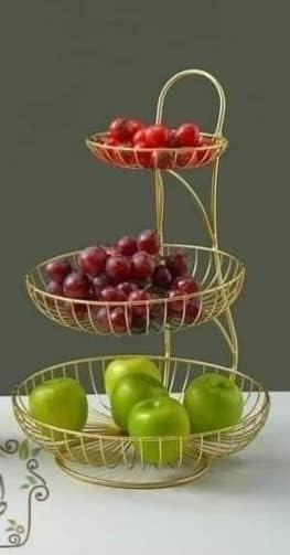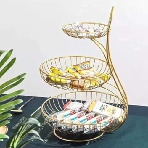 Generic - سلة فاكهة من 3 طبقات توضع على سطح الطاولة، بولة للفاكهة، عياشة لتقديم الخبز، حامل للخضروات للتخزين في المطبخ، بلون ذهبي، ستانلس ستيل